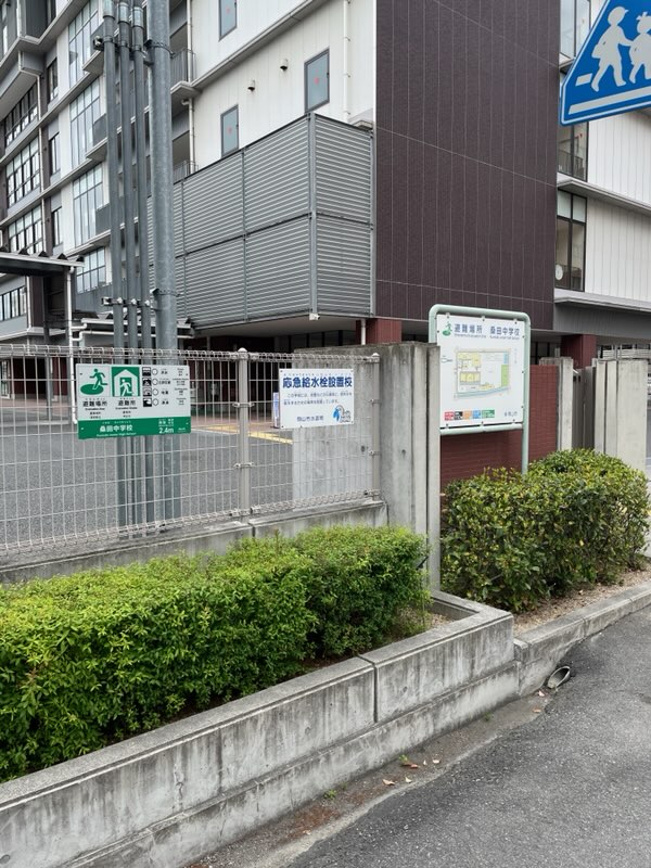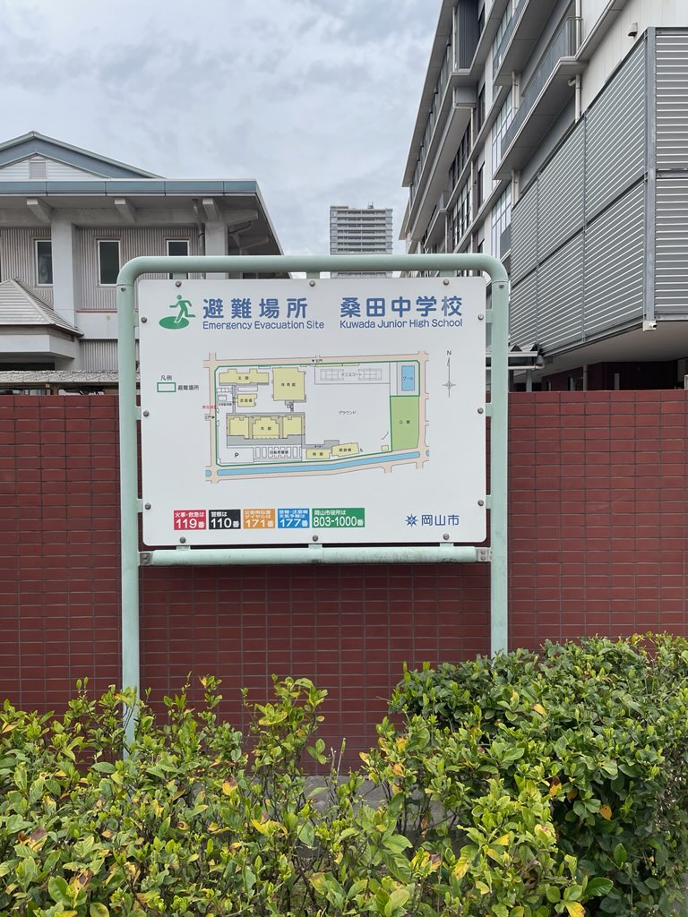 当事業所の第一避難場所(避難所)は、『桑田中学校』(北区東島田町2-3-35)になります。